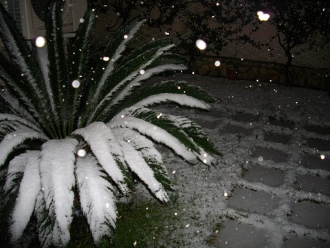 Sui campi e sulle strade silenziosa e lieve volteggiando, la neve Cade.